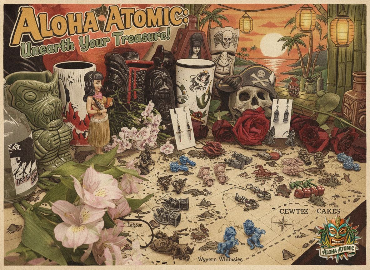 Aloha Atomic is the brain-child of Tim and Annie, a husband-and-wife duo creating jewelry where the sketchpad meets the digital workstation. We craft accessories that are as vibrant as a tiki bar at sunset and as edgy as a midnight graveyard stroll.