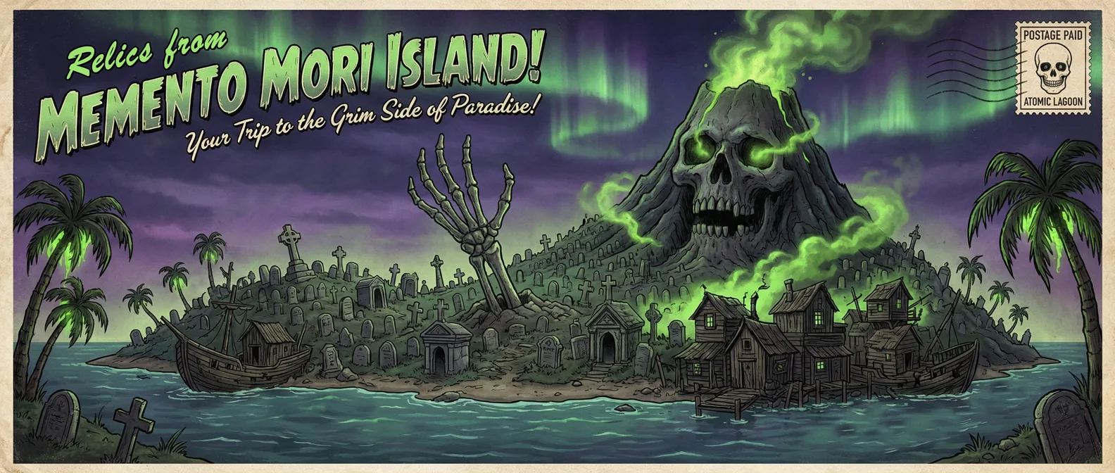 In the shadowed groves of the Atomic Lagoon, we don’t just remember the past—we celebrate the eternal spirit. The Memento Mori line is a masterfully 3D-sculpted tribute to the “Gothic” in Gothabilly, blending the architectural grandeur of Victorian monuments with a gritty, tropical-noir edge. It is a collection for the souls who walk the line between the tropical sun and the midnight moon, finding beauty in the monumental and the macabre.